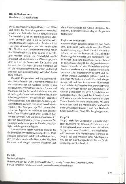 "Nachhaltig erfolgreich" heißt ein dreiseitiger Artikel über unsere Arbeit in der Fachzeitschrift "der deutsche schreiner" im Jahr 2003. Die pdf-Datei zum Download.