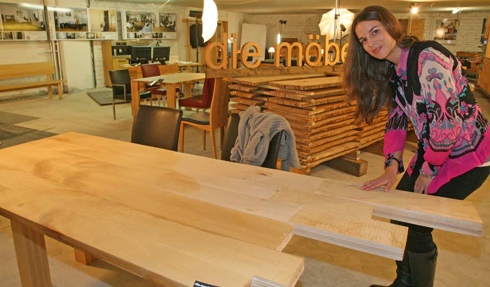 - einen Nussbaumtisch und einen nur halbfertigen in Buche